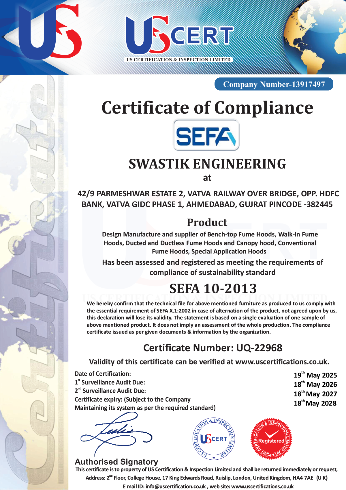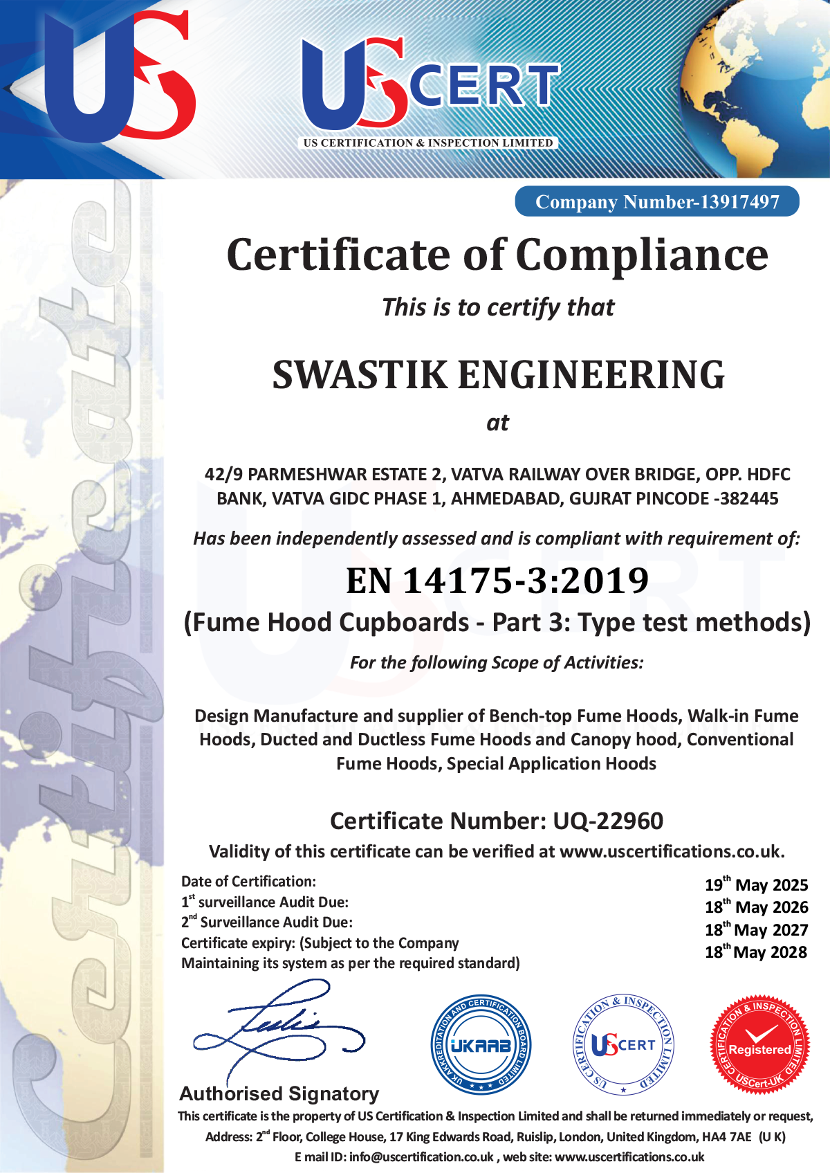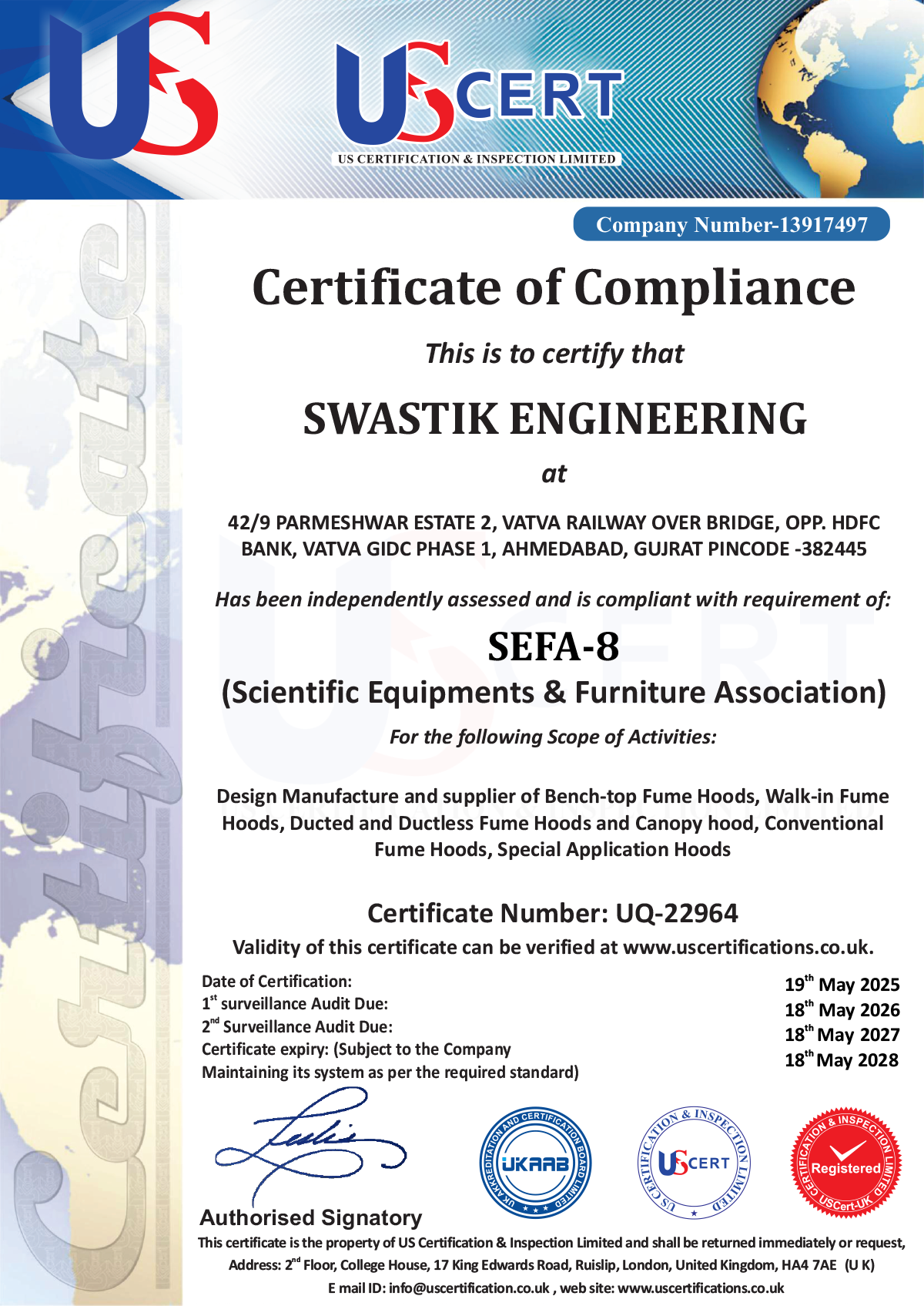 Swastik Engineering is one of the leading Laboratory Equipment manufacturer and supplier in India. We are involved in manufacturing and supplying machinery and laboratory furniture for pharmaceuticals since 2017. We are providing convenient and user-friendly fume hoods, laboratory furniture, and process equipment’s for pharmaceuticals, petrochemicals, food and beverage, and cleanroom equipment. Each product has been designed and manufactured by us to be more efficient and offer a better economy than other products available in the market. Our entire team is committed to supplying the best equipment in the industry with continuous up-gradation in quality standards. We make sure that every work executed with established international quality standards. Read More